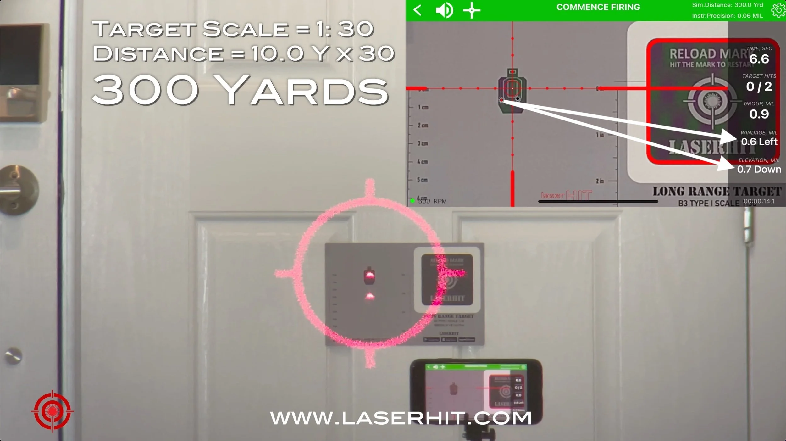 You can train with full-size or scaled targets in simulated distances up to 160 yards inside your home. This setup does not use ballistic calculations, but it provides excellent training in target acquisition, breathing, and trigger control. Use single or multiple LASERHIT targets, or your own in any size, shape, or quantity.
